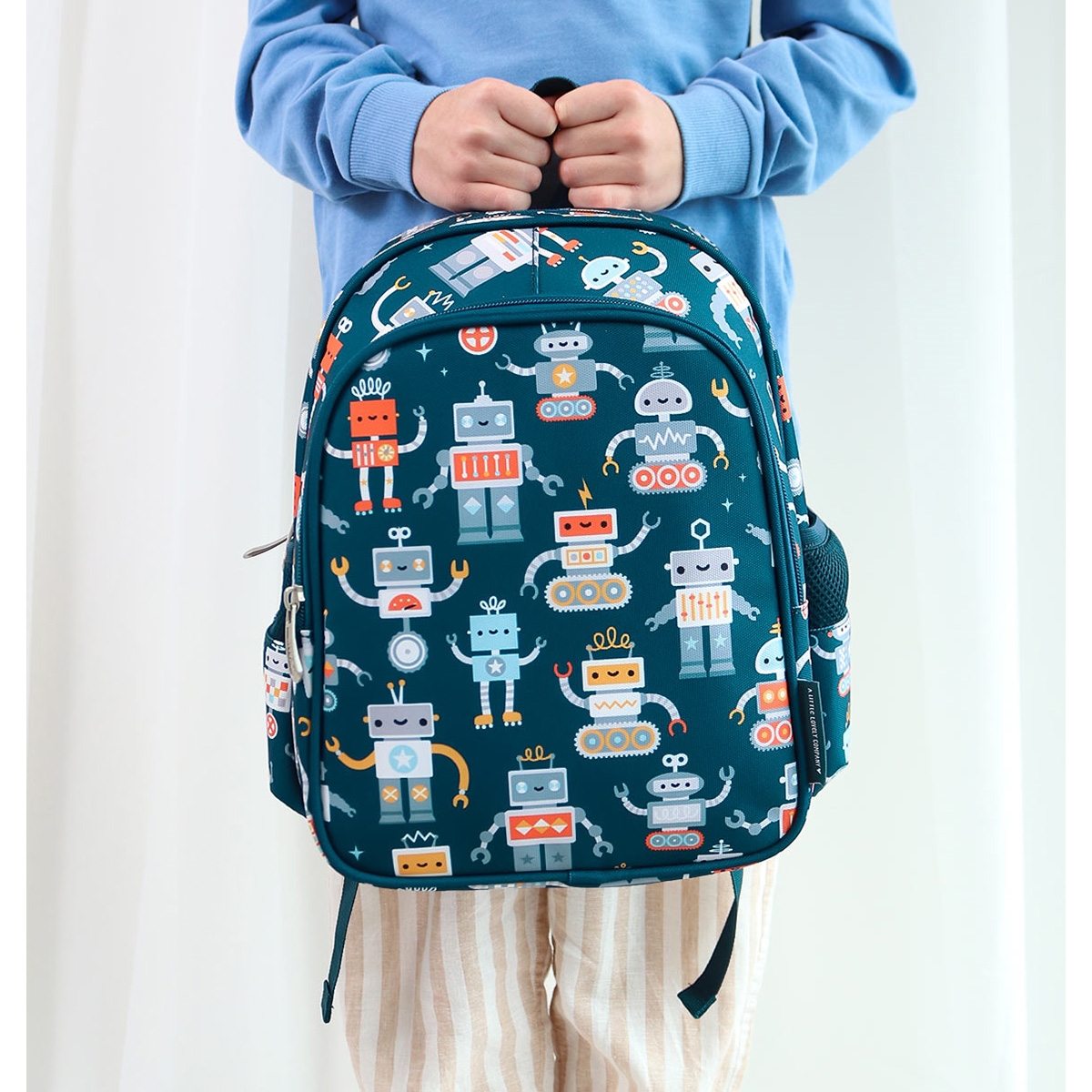 Den här härliga ryggsäcken från A Little Lovely Company har en isolerad främre ficka som ger gott om plats och håller snacks och drycker varma eller kalla. Ryggsäcken har en justerbar bröstrem framtill och vadderade axelremmar för att säkerställa att väskan sitter stadigt. Den är lätt i vikt för att inte kännas tung. Det stora huvudfacket rymmer tillräckligt med plats för skolböcker och leksaker, och har en extra innerficka för till exempel anteckningsböcker eller liknande. De två sidofickorna är perfekta för att rymma vattenflaskor. Den robusta ryggpanelen med stoppning och andningsbart material ger extra komfort. Kylpaket ingår ej.