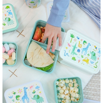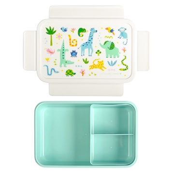 Rymlig matlåda med vackert design. Det lufttäta klick-och-stäng-locket och den avtagbara bento-behållaren med två fack säkerställer en perfekt organiserad lunch. En ideal låda för en fräsch och varierad lunch i skolan eller när du är på språng. Observera! Matlådan är inte lämplig för diskmaskin eller mikrovågsugn.