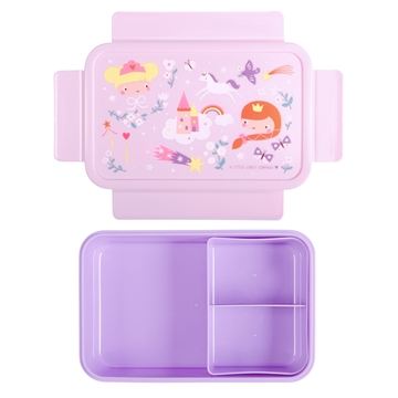 Rymlig matlåda med vackert design. Det lufttäta klick-och-stäng-locket och den avtagbara bento-behållaren med två fack säkerställer en perfekt organiserad lunch. En ideal låda för en fräsch och varierad lunch i skolan eller när du är på språng. Observera! Matlådan är inte lämplig för diskmaskin eller mikrovågsugn.