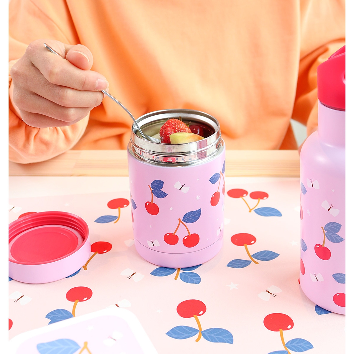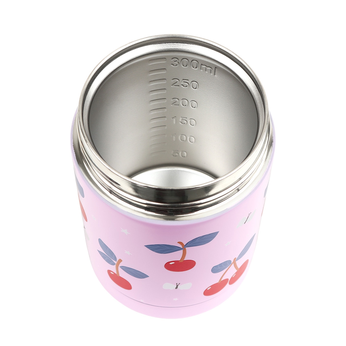 Dubbelväggig behållare i rostfritt stål för att hålla maten varm eller kall. Med skruvlock och ml-mått på insidan. Tar minimalt med plats.Specifikationer: