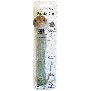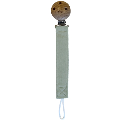 Napphållaren är tillverkad av 100% ekologisk bomull + clips av bokträ, vilket ger en hållbar och klassisk design. Passar perfekt till barnets outfit och håller nappen lätt på plats.