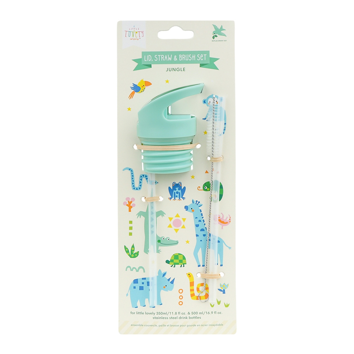 Set containing a lid, straw and brush for A Little Lovely 350ml (11.8 fl oz.) stainless steel drink bottle.