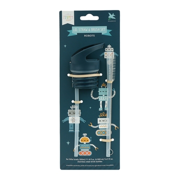 Set containing a lid, straw and brush for A Little Lovely 350ml (11.8 fl oz.) stainless steel drink bottle.