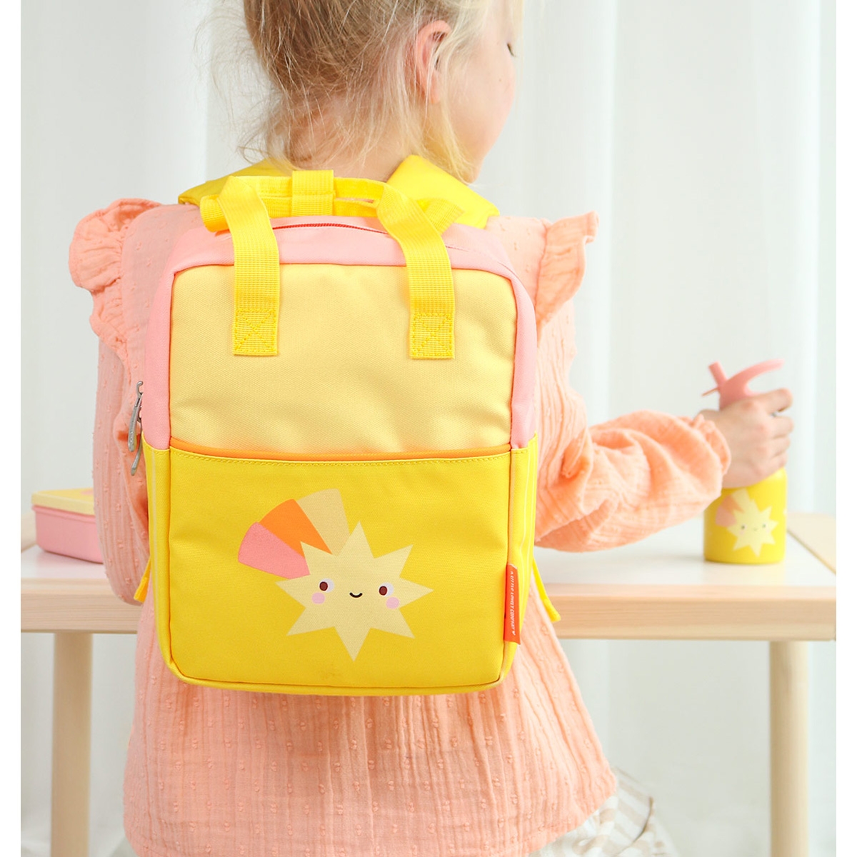 Denna lilla praktiska ryggsäck från A little lovely company har den perfekta storleken för mindre barn, perfekt för utflykten eller för användning i förskolan. Med ett rymligt huvudfack som har gott om plats för saker på resan. Tack vare spännet faller inte de justerbara axelremmarna ner och ryggsäcken hålls alltid på plats. Med vadderade remmar för extra bekväm komfort. Volym: 5,5 liter.
