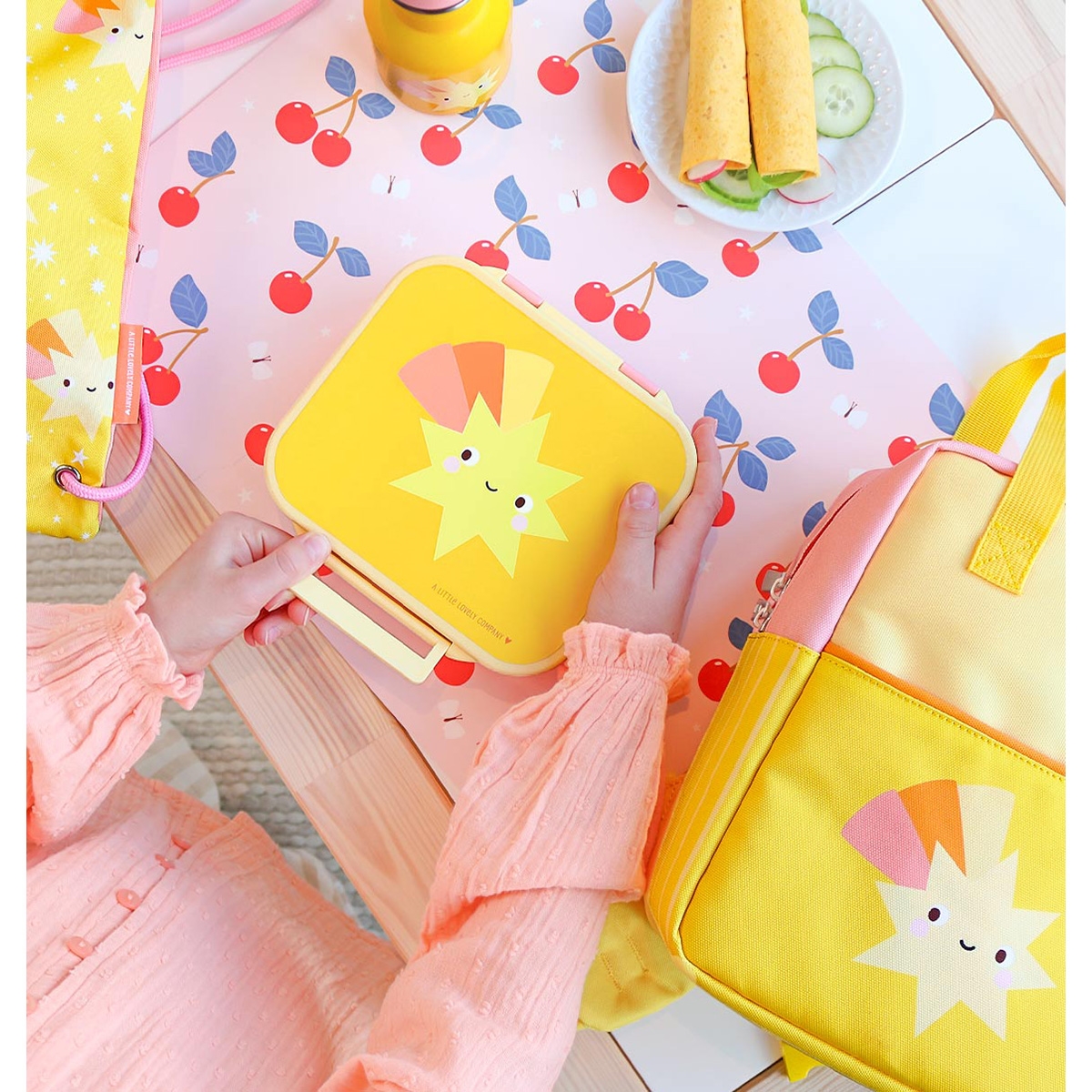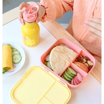 Smart och rymlig matlåda från A little lovely company. Matlådan har 3 fack, så mat och snacks enkelt kan hållas separata. Med praktiskt lock med klickfunktion, så att locket sitter fast ordentligt. Observera att matlådan inte är lämplig för diskmaskin eller mikrovågsugn.Specifikationer: