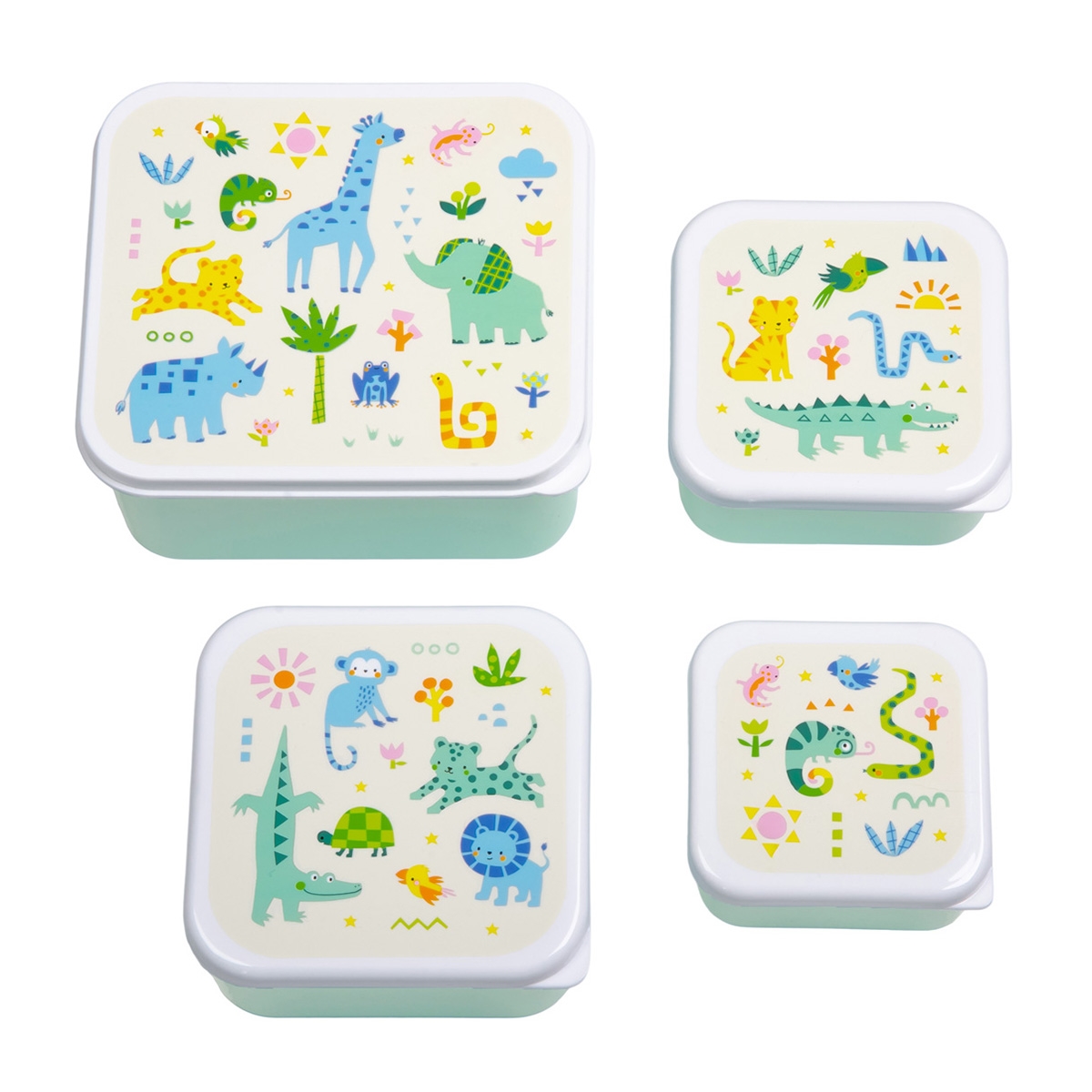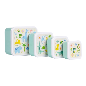 Förvara din matlåda eller favoritsnacks i detta smarta snacksbox-set. Frukt, grönsaker, snacks, smörgåsar, sandwich eller sallader får enkelt plats i dessa lådor. Detta härliga lunch- och snacksbox-set inkluderar fyra olika storlekar som gör det enkelt att separera olika livsmedel. Perfekt för skolluncher och snacks på språng.
