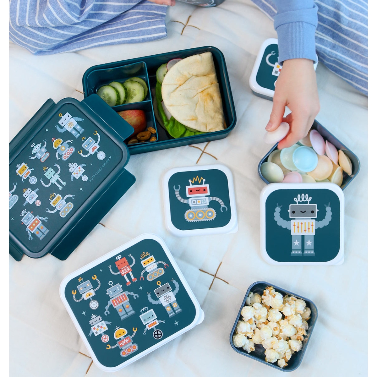 Förvara din matlåda eller favoritsnacks i detta smarta snacksbox-set. Frukt, grönsaker, snacks, smörgåsar, sandwich eller sallader får enkelt plats i dessa lådor. Detta härliga lunch- och snacksbox-set inkluderar fyra olika storlekar som gör det enkelt att separera olika livsmedel. Perfekt för skolluncher och snacks på språng.