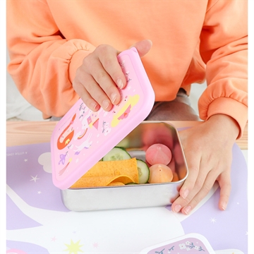 Super smart matlåda i rostfritt stål med lock av plast. Med sitt stora utrymme kan matlådan enkelt innehålla en smörgås, rågbrödsmackor, frukt och snacks samtidigt.
