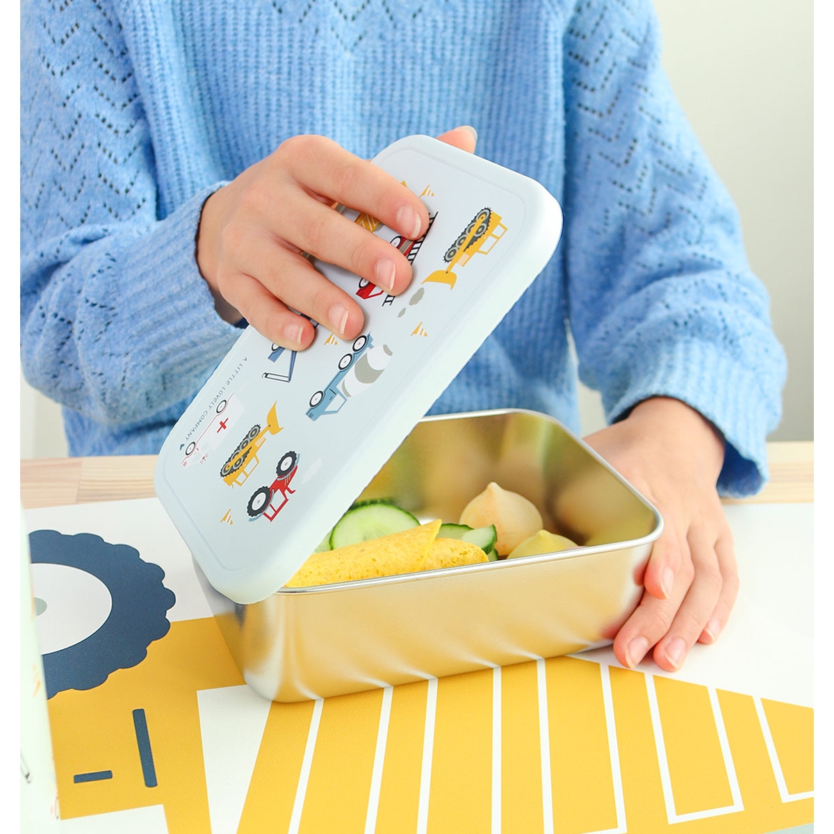 Super smart matlåda i rostfritt stål med lock av plast. Med sitt stora utrymme kan matlådan enkelt innehålla en smörgås, rågbrödsmackor, frukt och snacks samtidigt.