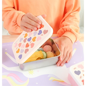 Super smart matlåda i rostfritt stål med lock av plast. Med sitt stora utrymme kan matlådan enkelt innehålla en smörgås, rågbrödsmackor, frukt och snacks samtidigt.